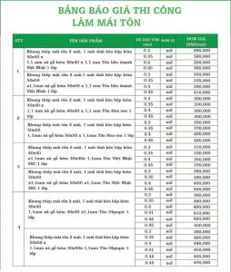 Dưới đây là mô tả chi tiết về bảng giá làm mái tôn trọn gói ...